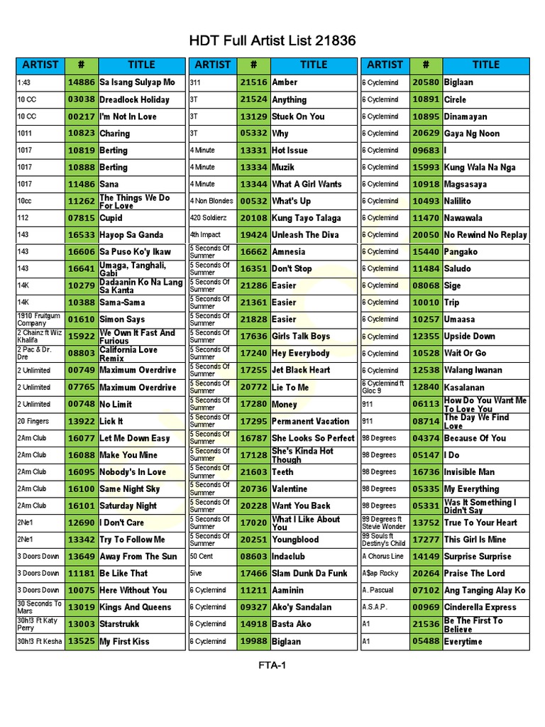 Hdt Full Artist List 21836 P Hyundai Karaoke Artist Songlist Pdf Entertainment General